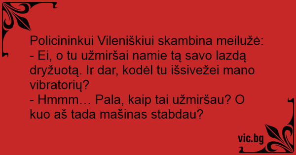 - Ei, o tu užmiršai namie tą savo lazdą dryžuotą. Ir dar, kodėl tu išsivežei mano vibratorių?