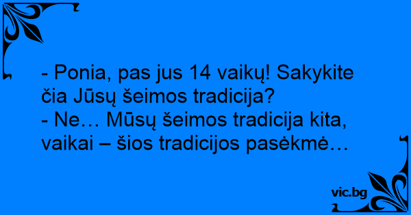 - Ponia, pas jus 14 vaikų! Sakykite čia Jūsų šeimos tradicija?