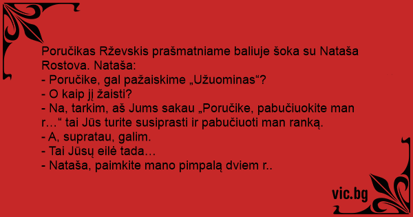 - Na, tarkim, aš Jums sakau „Poručike, pabučiuokite man r…“ tai Jūs turite susiprasti ir pabučiuoti man ranką.