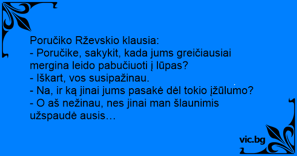 - Poručike, sakykit, kada jums greičiausiai mergina leido pabučiuoti į lūpas?