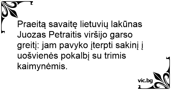 Praeitą savaitę lietuvių lakūnas Juozas Petraitis viršijo garso greitį: jam pavyko įterpti sakinį į uošvienės pokalbį su trimis kaimynėmis.