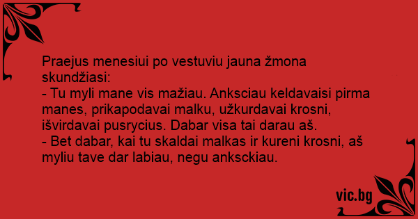 Praejus menesiui po vestuviu jauna žmona skundžiasi: