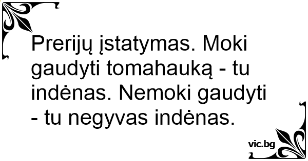Prerijų įstatymas. Moki gaudyti tomahauką - tu indėnas. Nemoki gaudyti - tu negyvas indėnas.