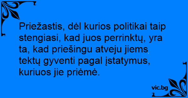 Priežastis, dėl kurios politikai taip stengiasi, kad juos perrinktų, yra ta, kad priešingu atveju jiems tektų gyventi pagal įstatymus, kuriuos jie priėmė.