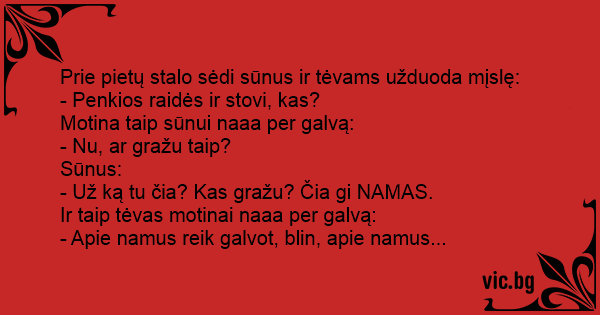 Prie pietų stalo sėdi sūnus ir tėvams užduoda mįslę: