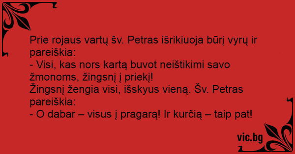 Prie rojaus vartų šv. Petras išrikiuoja būrį vyrų ir pareiškia: