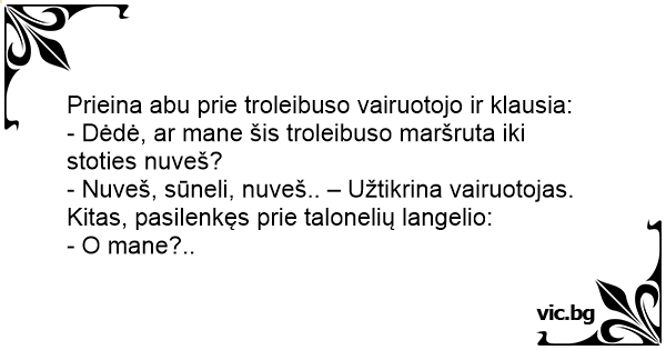 - Dėdė, ar mane šis troleibuso maršruta iki stoties nuveš?
