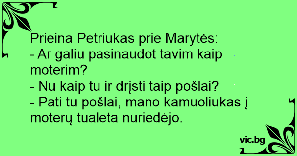 - Pati tu pošlai, mano kamuoliukas į moterų tualeta nuriedėjo.