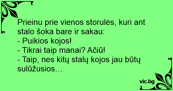 - Taip, nes kitų stalų kojos jau būtų sulūžusios…
