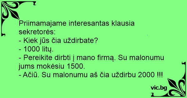 - Pereikite dirbti į mano firmą. Su malonumu jums mokėsiu 1500.