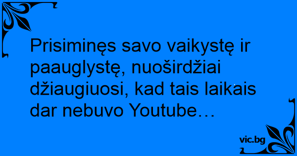 Prisiminęs savo vaikystę ir paauglystę, nuoširdžiai džiaugiuosi, kad tais laikais dar nebuvo Youtube…