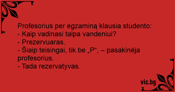 - Šiaip teisingai, tik be „P“, – pasakinėja profesorius.
