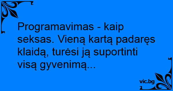 Programavimas - kaip seksas. Vieną kartą padaręs klaidą, turėsi ją suportinti visą gyvenimą...