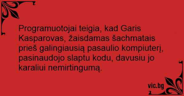 Programuotojai teigia, kad Garis Kasparovas, žaisdamas šachmatais prieš galingiausią pasaulio kompiuterį, pasinaudojo slaptu kodu, davusiu jo karaliui nemirtingumą.