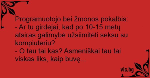 - Ar tu girdėjai, kad po 10-15 metų atsiras galimybė užsiimitėti seksu su kompiuteriu?