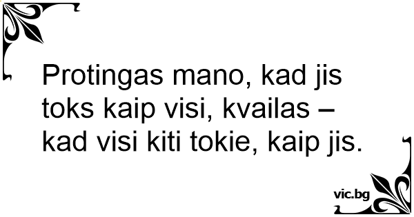 Protingas mano, kad jis toks kaip visi, kvailas – kad visi kiti tokie, kaip jis.