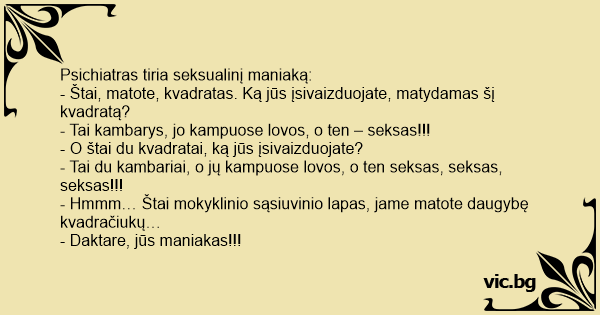 - Tai du kambariai, o jų kampuose lovos, o ten seksas, seksas, seksas!!!