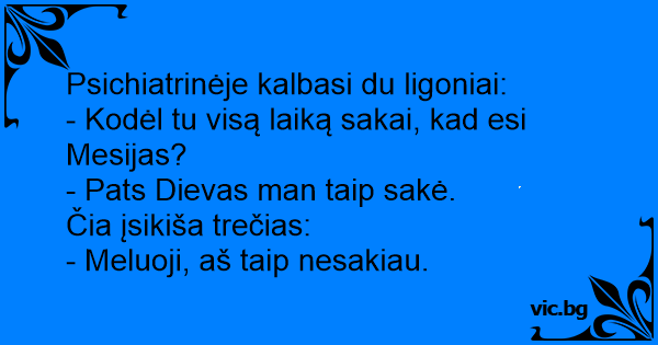 Psichiatrinėje kalbasi du ligoniai: