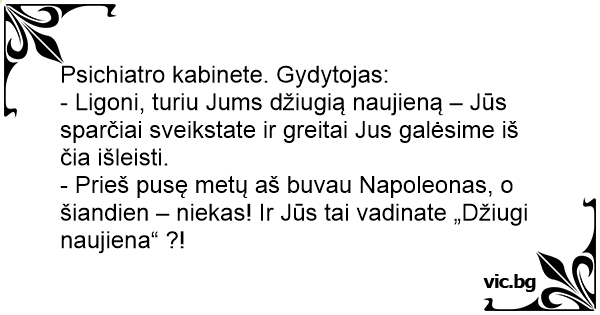 - Prieš pusę metų aš buvau Napoleonas, o šiandien – niekas! Ir Jūs tai vadinate „Džiugi naujiena“ ?!