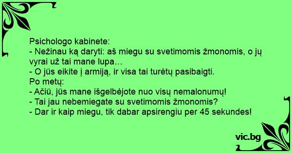 - Nežinau ką daryti: aš miegu su svetimomis žmonomis, o jų vyrai už tai mane lupa…