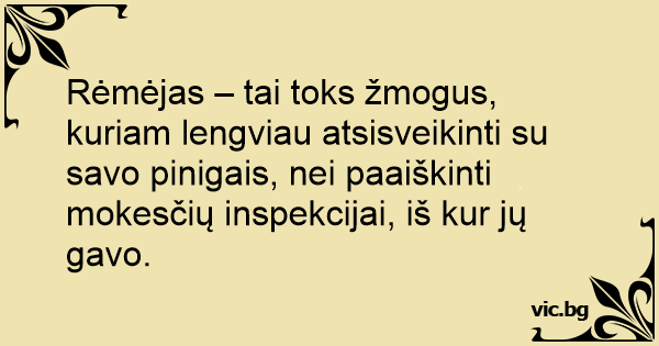Rėmėjas – tai toks žmogus, kuriam lengviau atsisveikinti su savo pinigais, nei paaiškinti mokesčių inspekcijai, iš kur jų gavo.
