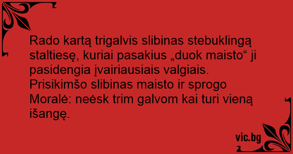 Moralė: neėsk trim galvom kai turi vieną išangę.