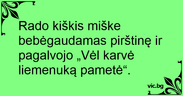 Rado kiškis miške bebėgaudamas pirštinę ir pagalvojo „Vėl karvė liemenuką pametė“.