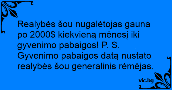 Realybės šou nugalėtojas gauna po 2000$ kiekvieną mėnesį iki gyvenimo pabaigos! P. S. Gyvenimo pabaigos datą nustato realybės šou generalinis rėmėjas.