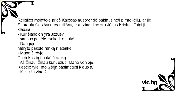 - Aš žinau, žinau kur Jėzus! Mano vonioje.