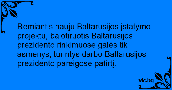 Remiantis nauju Baltarusijos įstatymo projektu, balotiruotis Baltarusijos prezidento rinkimuose galės tik asmenys, turintys darbo Baltarusijos prezidento pareigose patirtį.