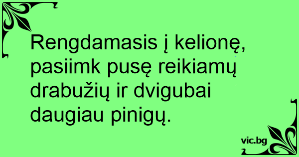 Rengdamasis į kelionę, pasiimk pusę reikiamų drabužių ir dvigubai daugiau pinigų.