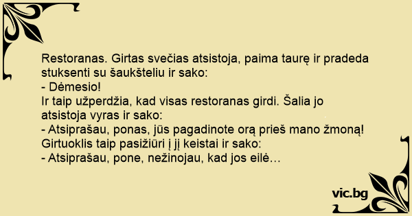 - Atsiprašau, ponas, jūs pagadinote orą prieš mano žmoną!