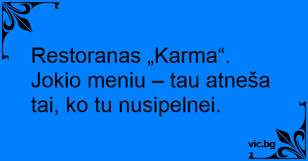 Restoranas „Karma“. Jokio meniu – tau atneša tai, ko tu nusipelnei.