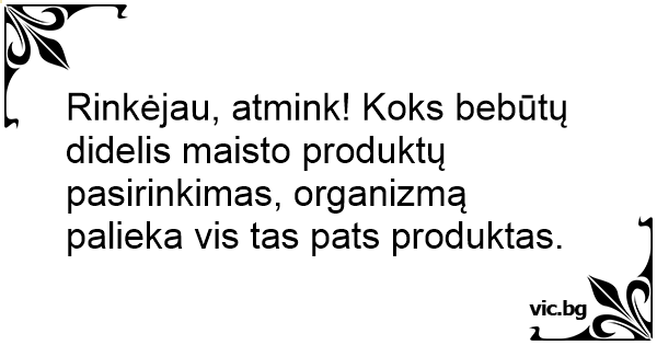 Rinkėjau, atmink! Koks bebūtų didelis maisto produktų pasirinkimas, organizmą palieka vis tas pats produktas.