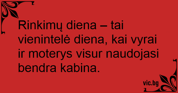 Rinkimų diena – tai vienintelė diena, kai vyrai ir moterys visur naudojasi bendra kabina.