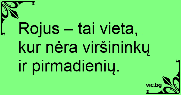 Rojus – tai vieta, kur nėra viršininkų ir pirmadienių.