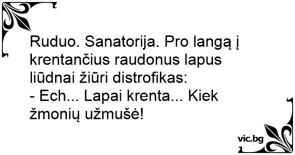 Ruduo. Sanatorija. Pro langą į krentančius raudonus lapus liūdnai žiūri distrofikas: