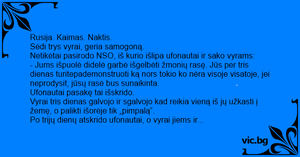 Po trijų dienų atskrido ufonautai, o vyrai jiems ir sako: