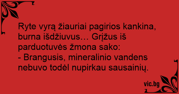 Ryte vyrą žiauriai pagirios kankina, burna išdžiuvus… Grįžus iš parduotuvės žmona sako: