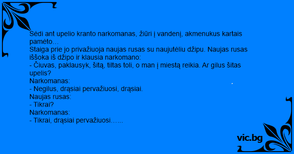 Šiaip ne taip išneria naujas rusas, išlipa į krantą ir sako: