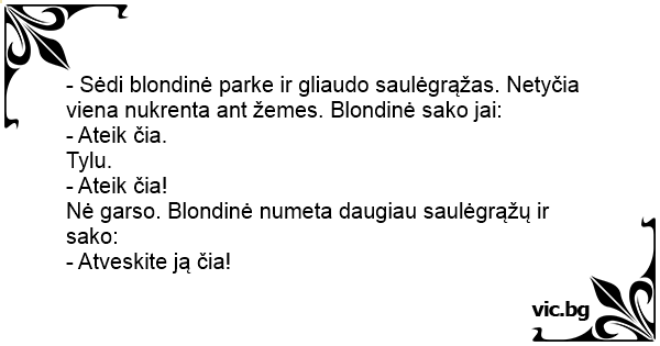 - Sėdi blondinė parke ir gliaudo saulėgrąžas. Netyčia viena nukrenta ant žemes. Blondinė sako jai: