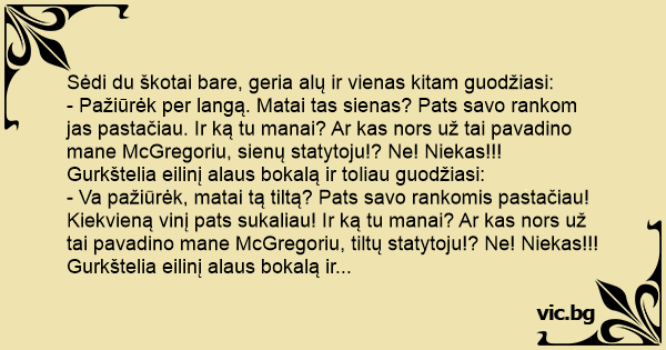 - Va pažiūrėk, matai tą tiltą? Pats savo rankomis pastačiau! Kiekvieną vinį pats sukaliau! Ir ką tu manai? Ar kas nors už tai pavadino mane McGregoriu, tiltų statytoju!? Ne! Niekas!!!