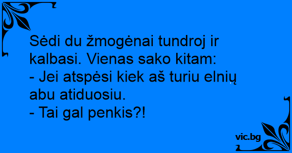 Sėdi du žmogėnai tundroj ir kalbasi. Vienas sako kitam: