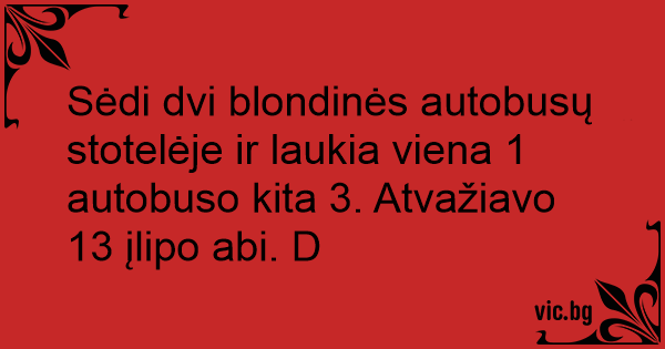 Sėdi dvi blondinės autobusų stotelėje ir laukia viena 1 autobuso kita 3. Atvažiavo 13 įlipo abi. D