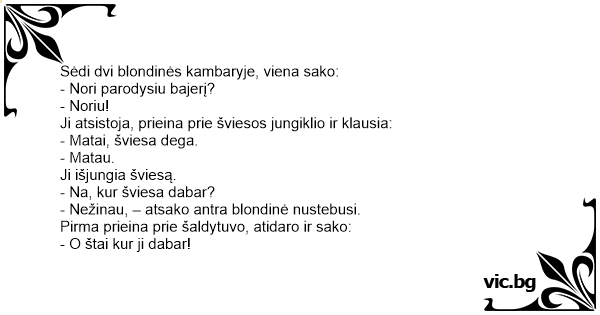 Ji atsistoja, prieina prie šviesos jungiklio ir klausia: