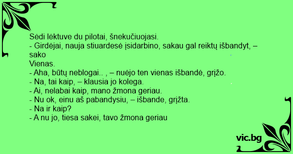 - Girdėjai, nauja stiuardesė įsidarbino, sakau gal reiktų išbandyt, – sako