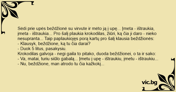 Krokodilas galvoja - negi gaila to pitako, duoda beždžionei, o ta ir sako: