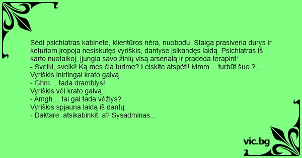- Daktare, atsikabinkit, a? Sysadminas aš, internetą jums įvedinėju.