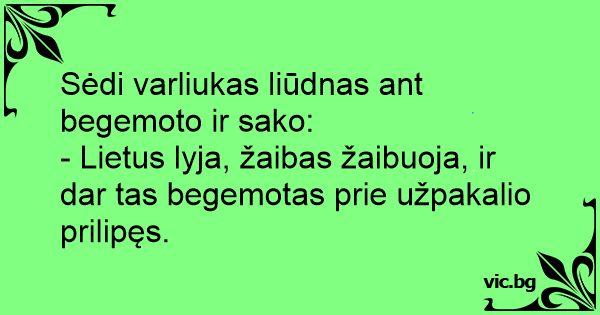 Sėdi varliukas liūdnas ant begemoto ir sako: