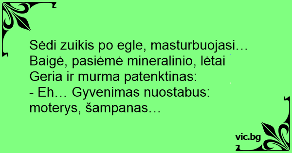 Sėdi zuikis po egle, masturbuojasi… Baigė, pasiėmė mineralinio, lėtai